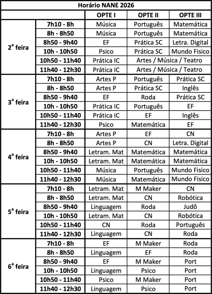 Horário NANE 2026